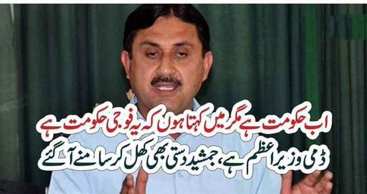 اب حکومت ہے مگر میں کہتا ہوں کہ یہ فوجی حکومت ہے ، ڈمی وزیر اعظم ہے ، جمشید دستی بھی کھل کر سامنے آگئے