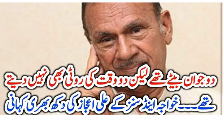 دو جوان بیٹے تھے لیکن دو وقت کی روٹی بھی نہیں دیتے تھے۔۔۔خواجہ اینڈ سنز کے علی اعجاز کی دکھ بھری