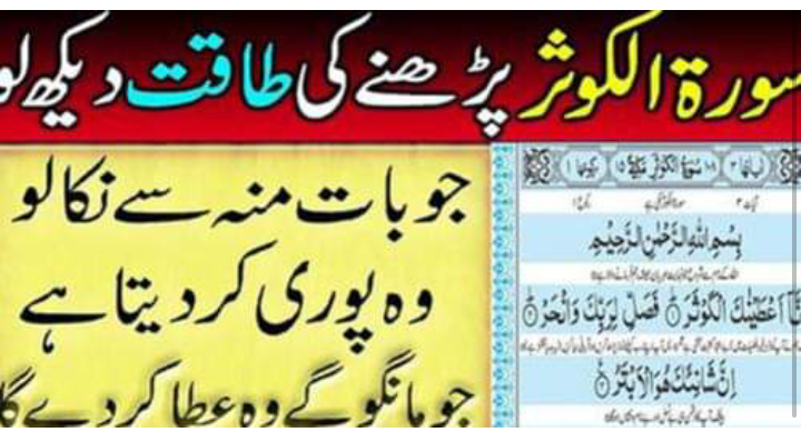 پھر نمازوں کی پابندی کرتا ہے تو اللہ پاک اس کی جو بھی حاجت ہو تی ہے وہ دس دنوں میں ضرور پوری فرما دیتا ہے تو میرے دوستو ہم آپ سے یہ امید کرتے ہیں کہ آپ روزانہ سورۃ کوثر کو پڑھنے کا معمول بنائیں گے