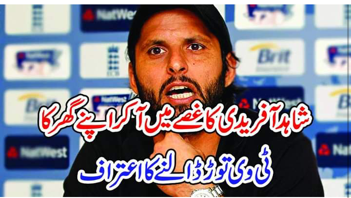 کراچی (این این آئی)قومی کرکٹ ٹیم کے سابق کپتان شاہد خان آفریدی نے ایک مرتبہ غصے میں آکر اپنے گھر کا ٹی وی ہی توڑ ڈالنے کااعتراف کیا ہے شاہد