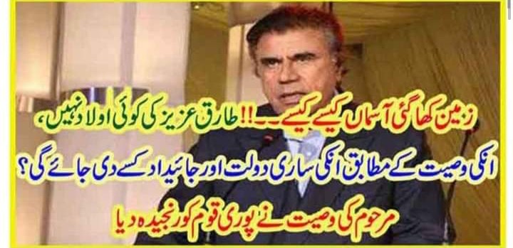مزید انکا کہنا تھا کہ عمران خان ایک سچے انسان ہیں ۔ طارق عزیز کے انتقال کی خبر نے سوشل میڈیا، قوم میڈیا پر بھونچال پیدا کر دیا اور انکی زندگی کے حوالے سے ناقابلِ یقین کہانیاں سامنے آنا شروع ہوگئی، سوششل میڈیا پر ایک صارف نے طارق عزیز مرحوم کے بارے میں لکھا کہ ’’ طارق عزیز مرحوم کی کوئی اولاد نہیں تھی…ان کی وصیت کے مطابق انہوں نے اپنی تمام جائیداد “ریاستِ پاکستان” کے نام وقف کر دی تھی‘‘۔ خیال رہے کہ طارق عزیز پی ٹی وی کے سب سے پہلے مرد اناؤنسر تھے۔طارق عزیز نے کئی فلموں میں بھی اداکاری کی ۔انہوں نے 60 اور 70 کی دہائی میں کئی