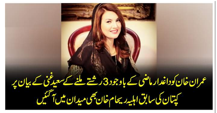 عمران خان کو داغدار ماضی کے باوجود 3 رشتے ملنے کے سعید غنی کے بیان پر کپتان کی سابق اہلیہ ریحام خان بھی میدان میں آگئیں