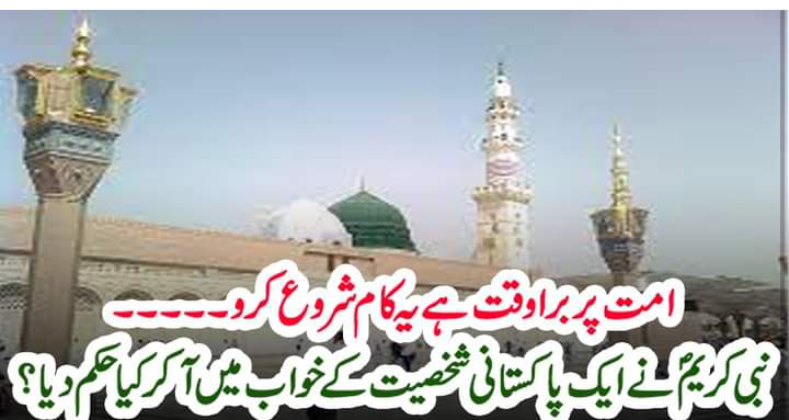 قبل کی بات ہے کہ ناچیز کو خواب میں امام الانبیاء حضور سرور عالمؐ کی زیارت نصیب ہوئی
