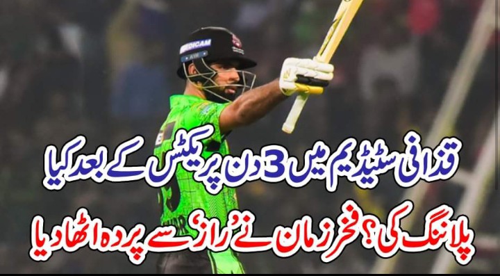 لاہور قلندرز کے بلے باز فخر زمان نےکہا ہے کہ ان کی قذافی اسٹیڈیم میں تین دن کی پریکٹس رنگ لے آئی ہے وہ تین دن