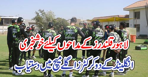 لاہور قلندرز کے مداحوں کیلئے اچھی خبر آگئی ، انگلینڈ ٹیم کے دو کرکٹرز اگلے میچ میں دستیاب ہوںگے ۔