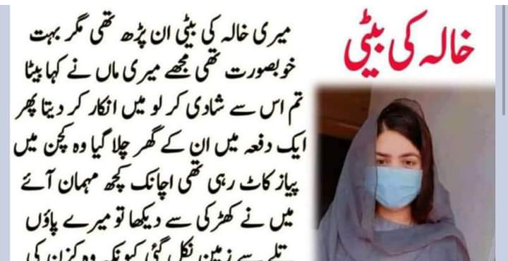 میری خالہ کی بیٹی ان پڑھ تھی مگر بہت خوبصورت تھی