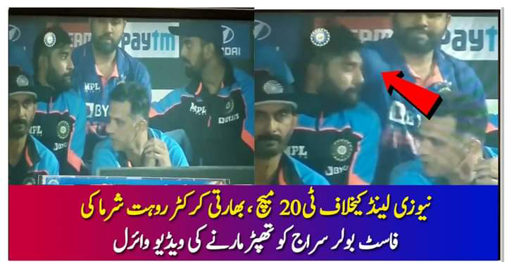 نیوزی لینڈ کیخلاف ٹی 20 میچ ، بھارتی کرکٹر روہت شرما کی فاسٹ بولر سراج کو تھپڑ مارنے کی ویڈیو وائرل