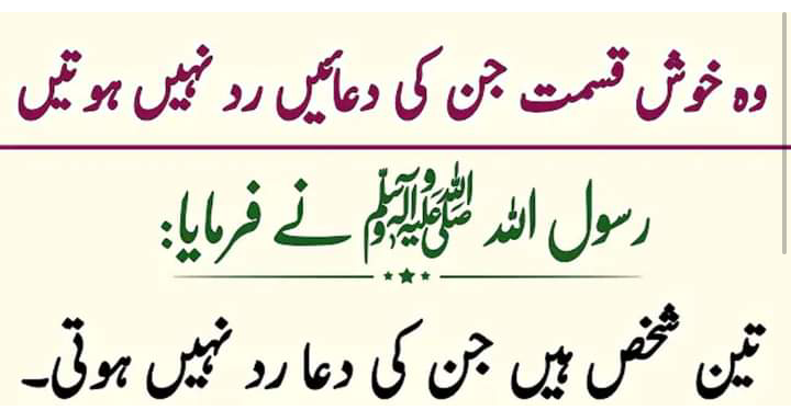 رسول اکرم صلی اللہ علیہ وسلم نے ارشاد فرمایا تین قسم کے لوگ ہیں جن کی دعا رد نہیں ہوتی۔