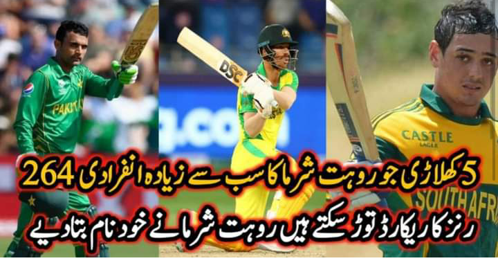 صرف چند ہی کرکٹرز ہیں جنہوں نے بڑی ڈبل سنچریاں بنانے کو ممکن بنایا ہے اور یہ مشکل ترین کاموں میں سے ایک ہے۔ روہت نے اپنی اننگز میں 33 چوکے اور 9 چھکے لگائے اور سنچری بنانے کے بعد ڈبل سنچری بنانے کے بعد ان کی ترقی بھی شاندار تھی۔ یہ 5 موجودہ بلے بازوں کو دیکھنے کا وقت ہے جو روہت شرما کا سب سے زیادہ انفرادی ون ڈے سکور کا ریکارڈ توڑ سکتے ہیں۔