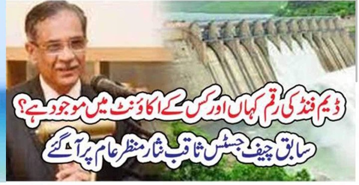 کہ ڈیم فنڈز کی 12 ارب روپے کی رقم اسٹیٹ بینک کے اکاؤنٹ میں جمع ہے اور منافع بھی آ رہا ہے۔ سابق چیف جسٹس ثاقب نثار نے مزید کہا کہ ڈیم کی تعمیر ایک لمبا عمل