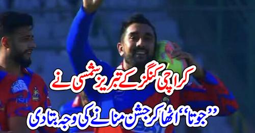 کراچی کنگز کے تبریز شمسی نے ’’جوتا‘‘اٹھا کر جشن منانے کی وجہ بتادی