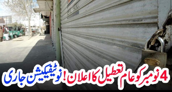 عام تعطیل ہوگی۔واضح رہے کہ عام تعطیل کا نوٹیفیکیشن 28 اکتوبر کو جاری کیا گیا تھا۔
